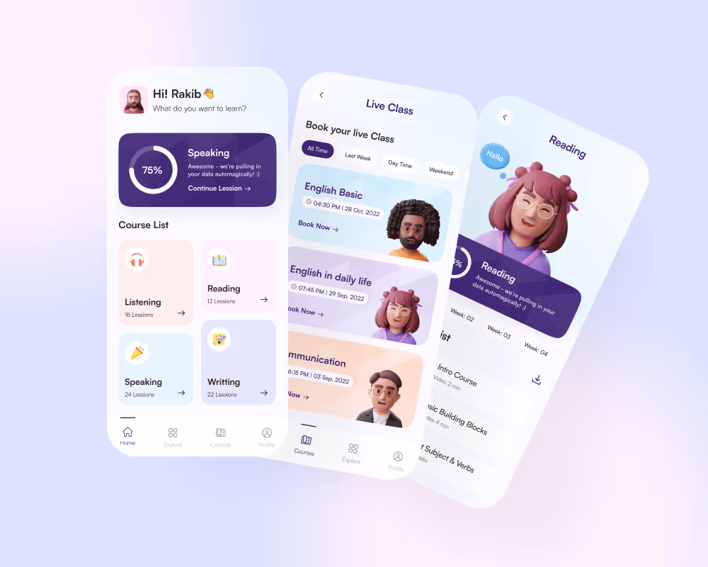 Our Babble App Redesign Concept brings a fresh, modern approach to language-learning apps. With a minimalist design style, it ensures clarity and ease of use.