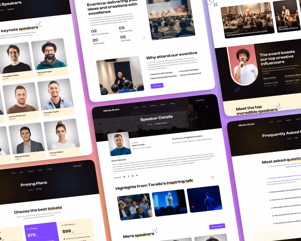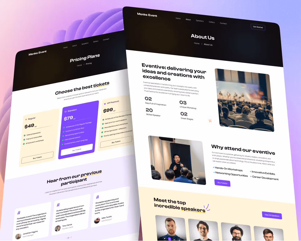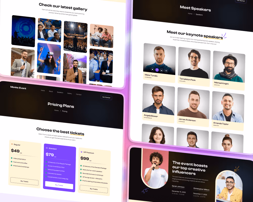 Monks Event is the ultimate website template for conferences, exhibitions, and event management professionals. Designed for maximum engagement, it ensures a seamless user experience with a visually striking layout.