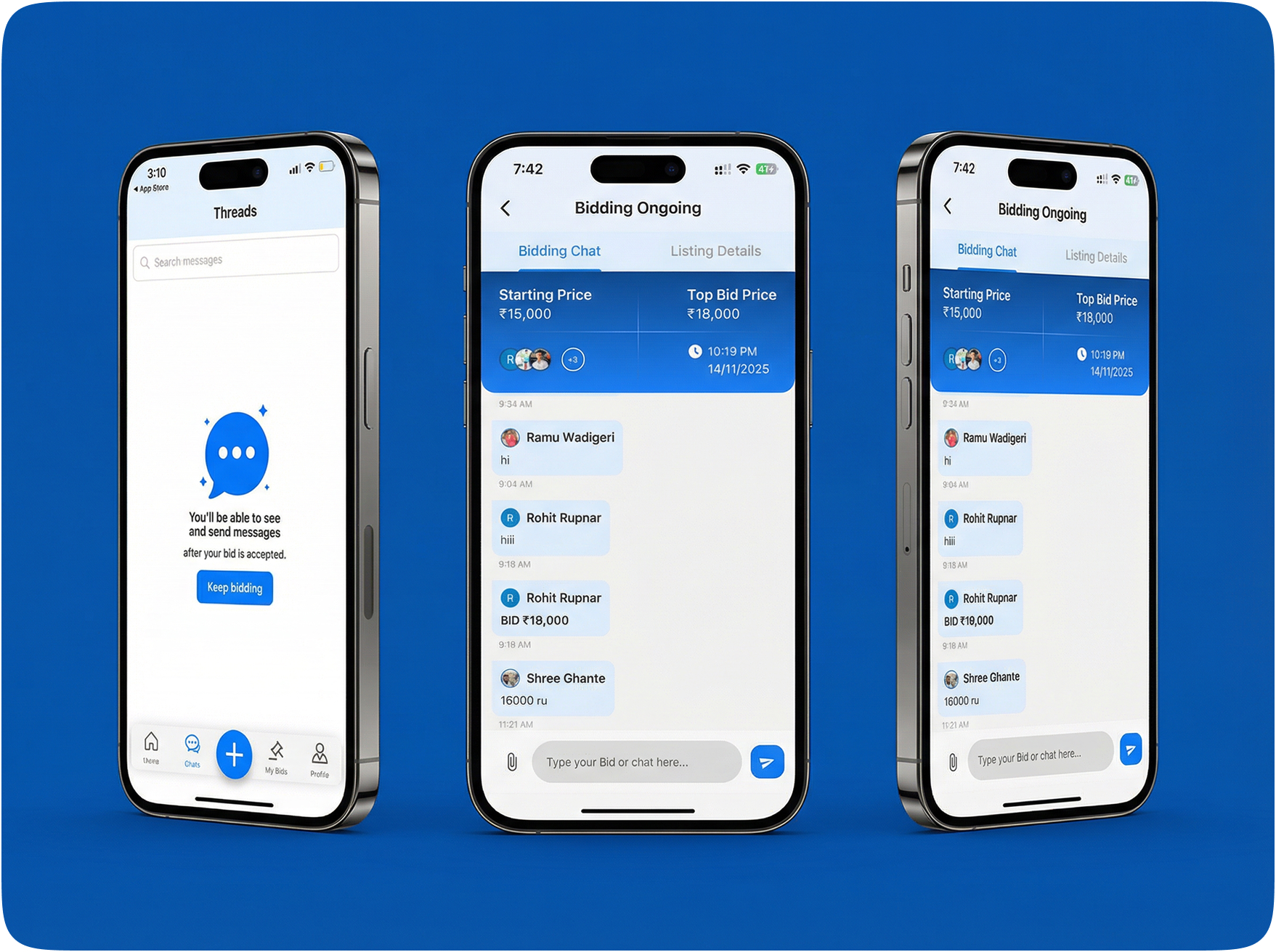 Built an in-app chat module that unlocks only after a bid is won, streamlining the final negotiation.