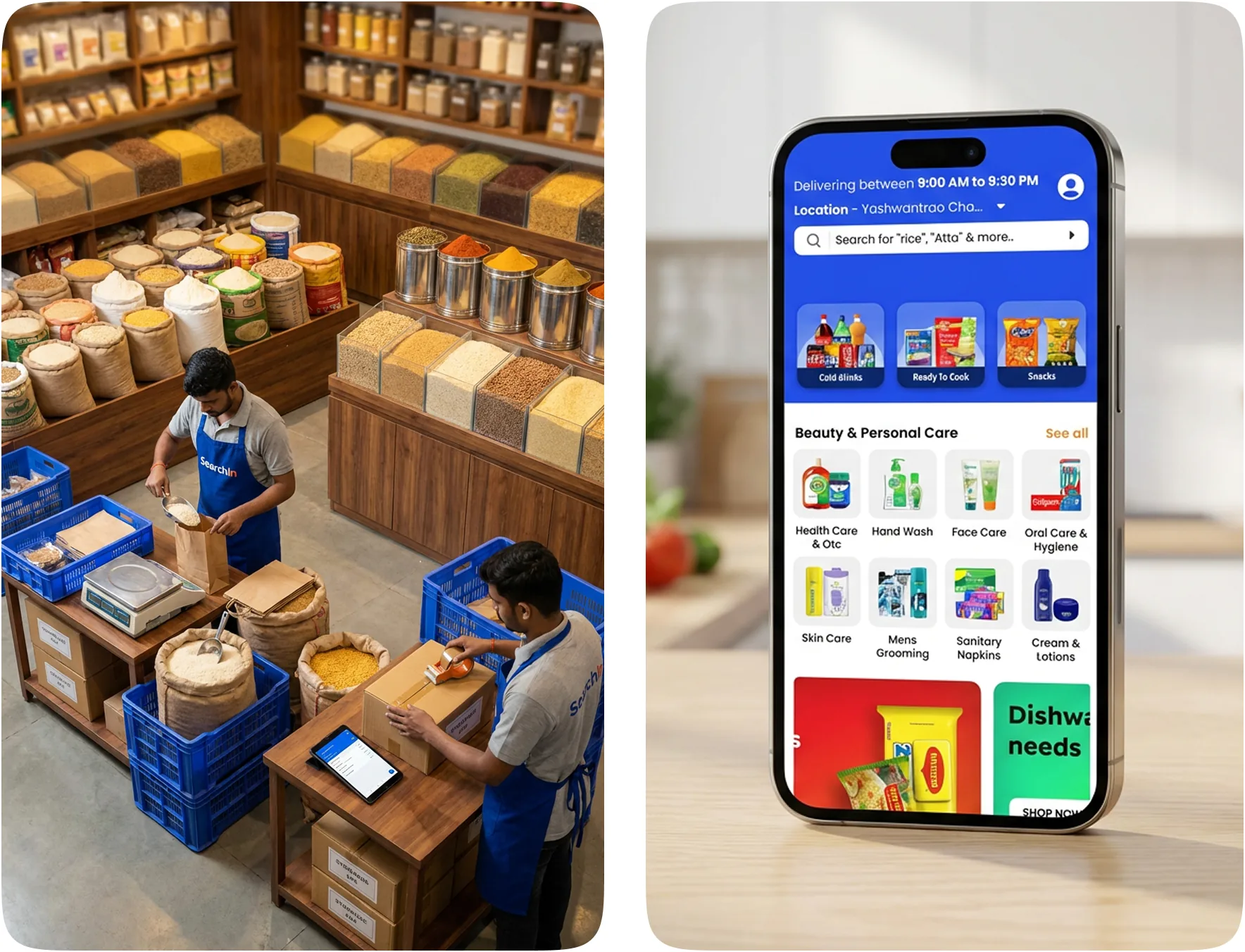 Search-In Estore is a complex multi-vendor grocery marketplace app. The challenge was to connect buyers with the nearest vendor based on serviceable pin codes while managing logistics for delivery. Innovit Labs built the core geolocation logic, commission allocation engines, and delivery analytics to power this hyperlocal ecosystem.